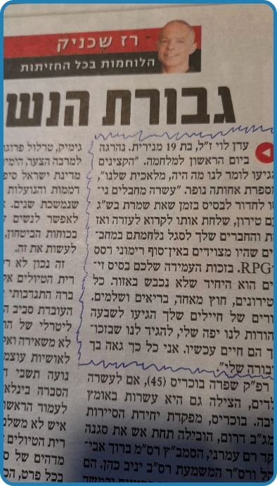 הגיעו לכאן שתי קצינים בכירים מהיחידה אחד מהם היה איתך שם, הם סיפרו שלחמת עד הרגע האחרון שלא וויתרת שהצלת את כל הפלוגה ולקח לי יותר מדי זמן להבין שאחותי היא גיבורה, גיבורה שלי, גיבורת ישראל וגיבורה של כל חייל במדינה